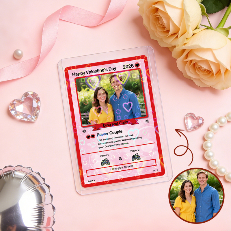 Personalized Valentine’s Day Power Couple Card, Custom Anniversary Card Couple Photo Anime Style, Best Valentine's Day Gift for Lover