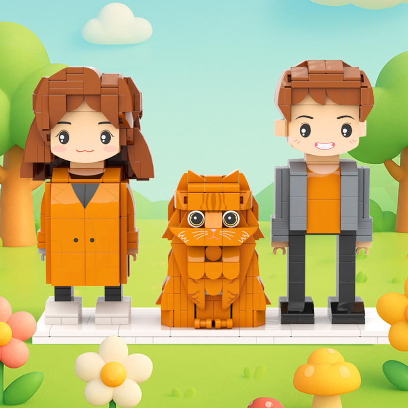 Customizable Full Body 2 People Brick Figures Persaonalized Brick Figures with Pets Gift for Couple