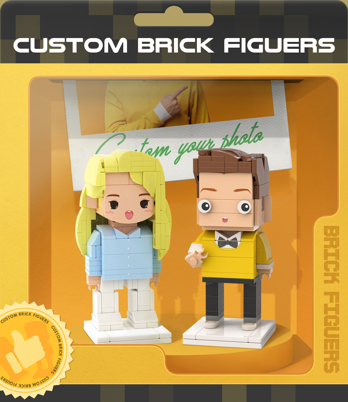 Surprise Gifts Full Body Customizable 2 People Photo Frame Custom Cute Brick Figures