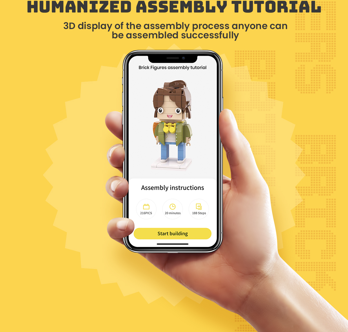 - The scope of customization includes the character's hairstyle, expression, conventional accessories and so on. For complex accessories may not be well restored, we will try to restore within the structure of the building blocks for you.